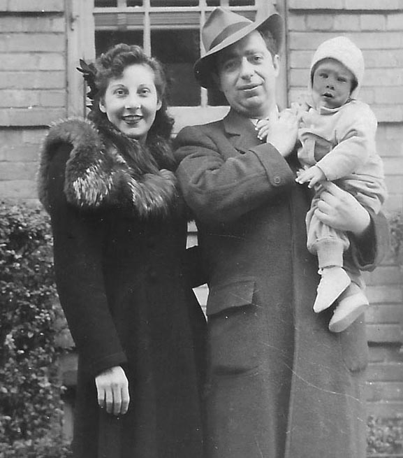 Mom and dad in city attire with tiny Steve (left); casual attire (right)