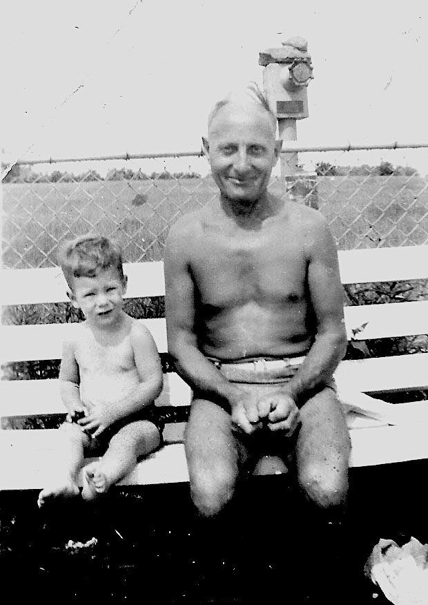 Summers were a time for mom and dad to shed their city garb and don their leisurewear. Dad’s city clothes were almost always the same, just like shown in the photo of him holding a pre-memory me. He wore his uniform of suit and tie to work, to synagogue, to parties, to meetings, to family gatherings, you name it. Getting casual at home usually meant taking off his suit jacket and hat and lounging in his starched white shirt and tie.