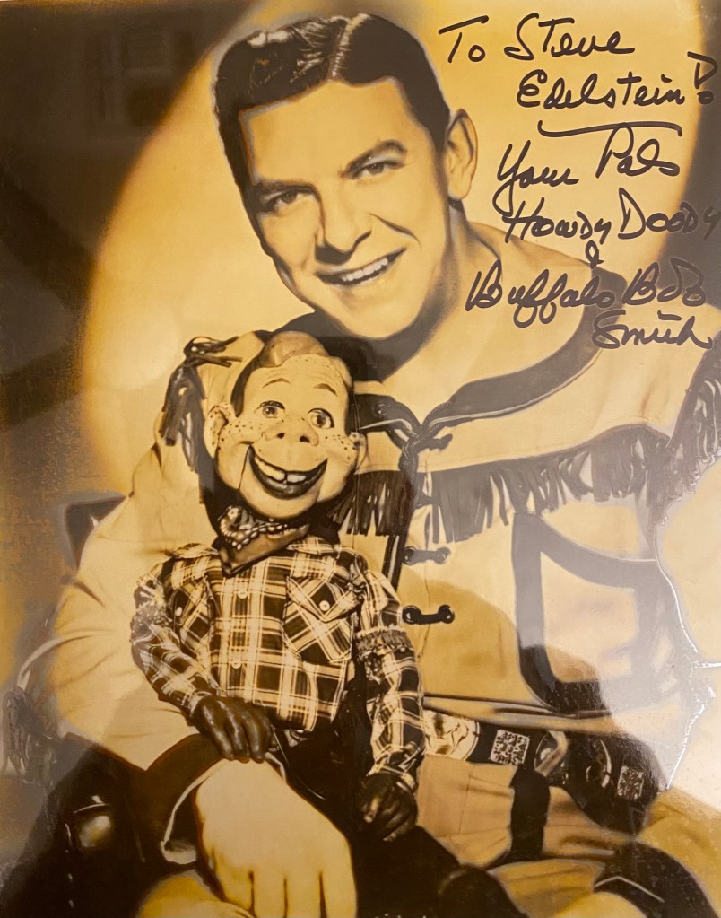 (I have a deep, lifelong affection for Howdy and the gang since Howdy Doody’s first broadcast in 1947 when I was four. It was the #1 show in its time slot—of course the fact that it was the only show in its time slot may have had something to do with that. When I was six, my well-connected Uncle Charley actually got me on the show in the fourth row of the Peanut Gallery. When I was in my 60s, my kids gave me a signed Howdy Doody and Buffalo Bob Smith photo— personally dedicated to me—that I treasure.)
